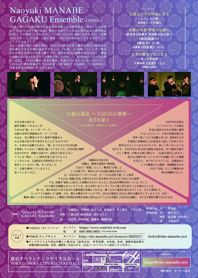 【受賞者情報】Naoyuki MANABE GAGAKU Ensembleの演奏会が開催されます